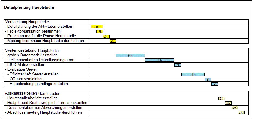 Beschreibung der Berechnung: Nehmen Sie die Detailplanung für die Hauptstudie und die Projektorganisation zur Hand.