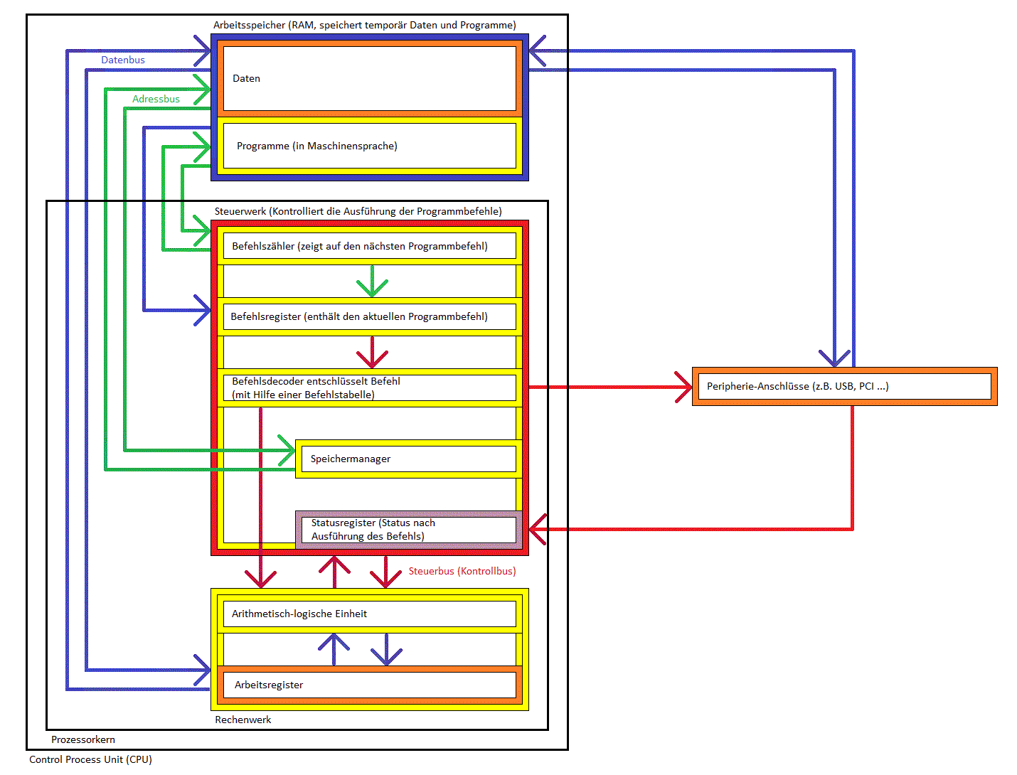 Die Control Prozess Unit (CPU) besteht aus dem Rechenwerk,