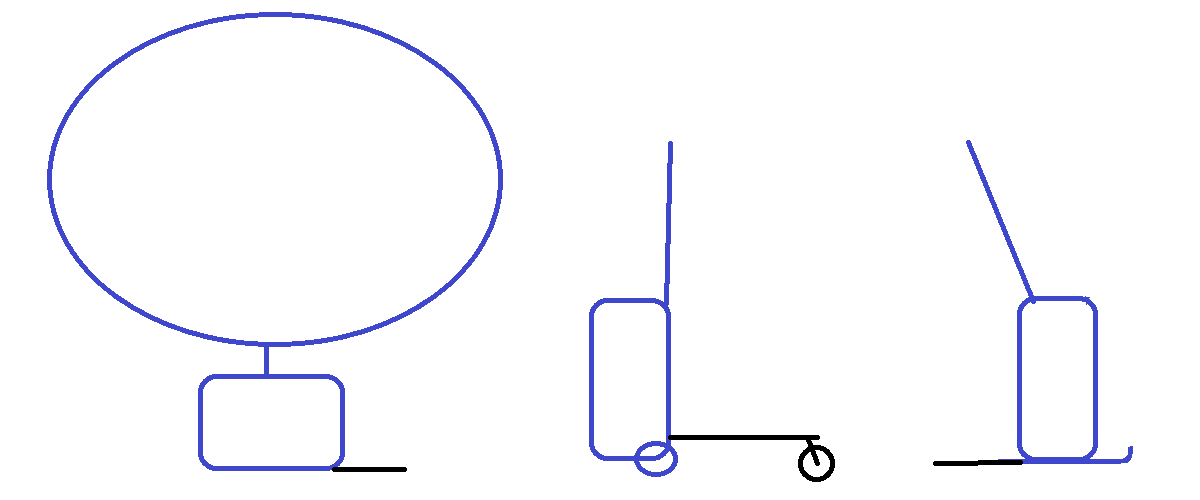 Variante I: Mit Helium wird der Koffer getragen. Pro Kilogramm Gewicht wird ein m3 Volumen an Gas benötigt. Somit hätte ein