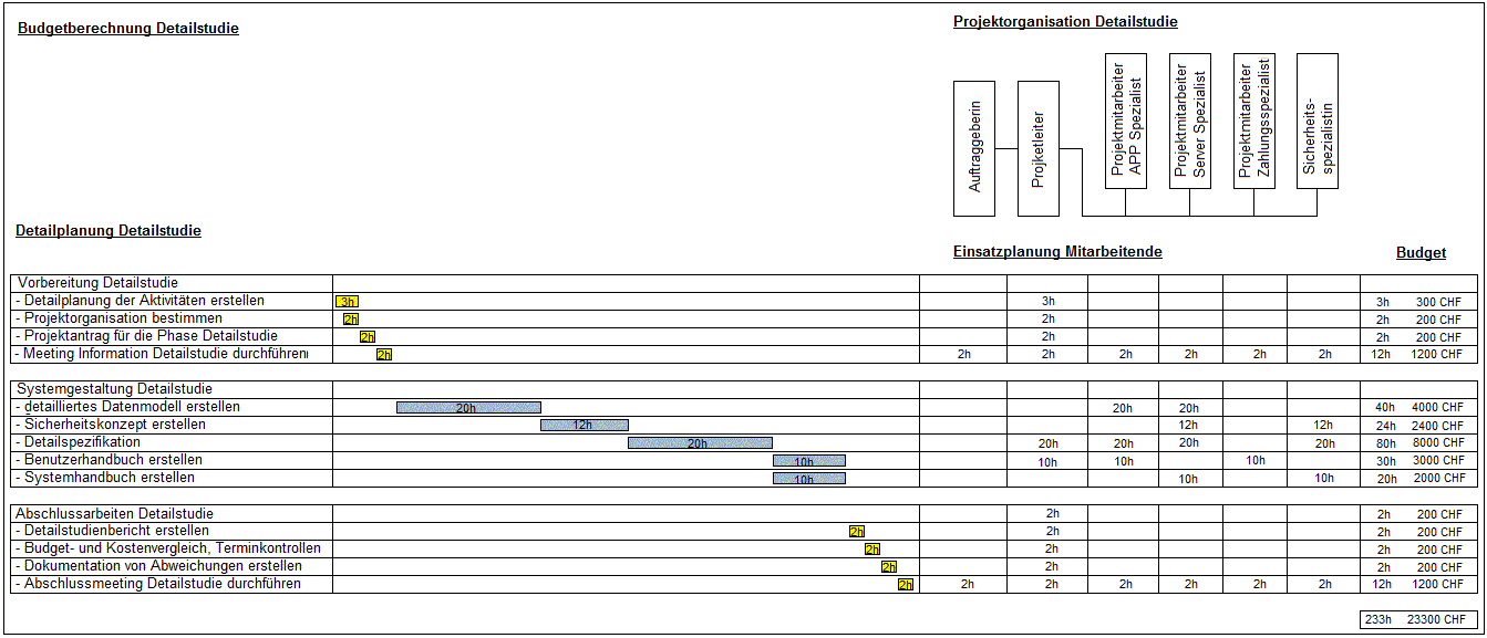 Berechnung der Kosten: CHF 23300 = Budget Hauptstudie * 5 = CHF 116500.